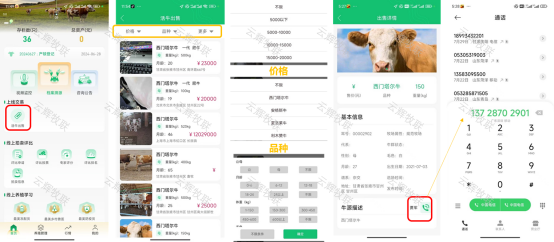 1、線上交易平臺:展示育肥牛信息(品種、體重、健康證明)、出欄時間等